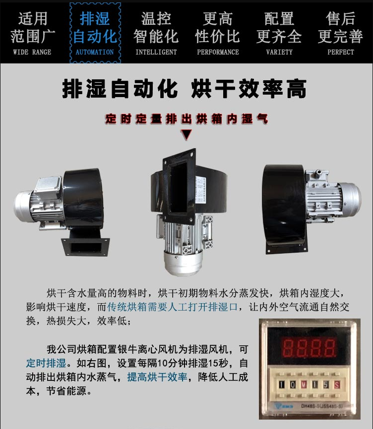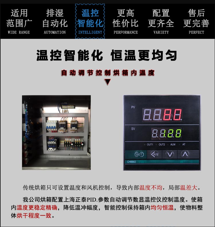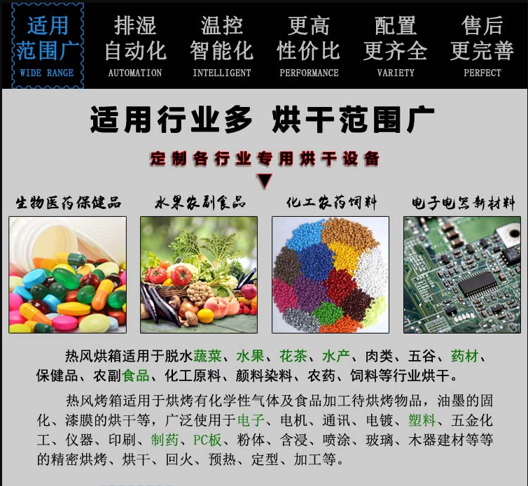 b、利用強(qiáng)制通風(fēng)作用,烘箱內(nèi)設(shè)有風(fēng)道,物料干燥均勻。